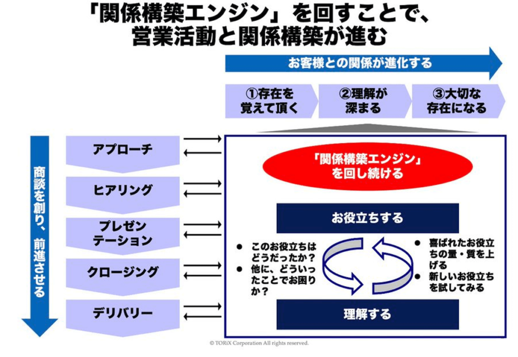 また、質問力を磨くことで関係構築エンジンの回転数が上がり、商談が前に進み出します。