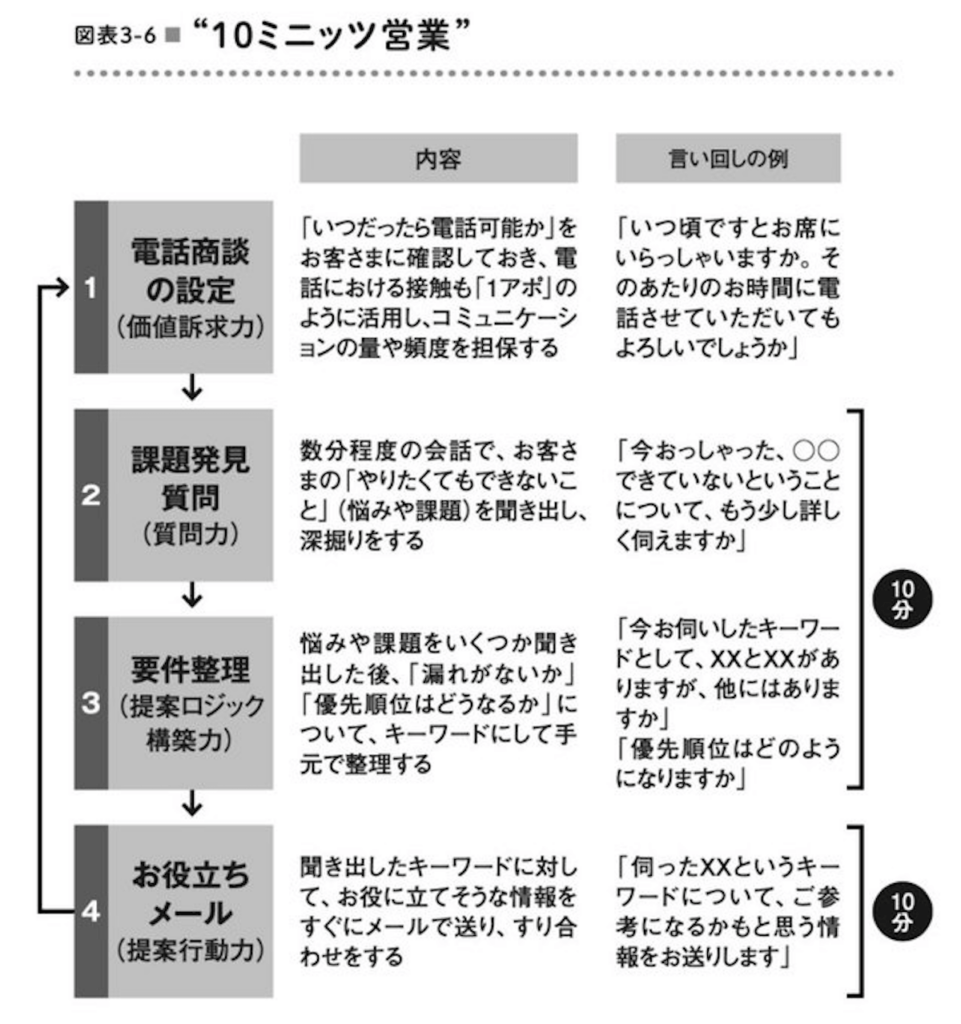 発注を検討する可能性のある営業には電話でのディスカッションをいとわないお客様も多いです。対面での商談だけだと、アポイントメントの間に時間的なロスが生じがちです。「10分電話商談」を活用することで、お客様との接点を増やすことができます。