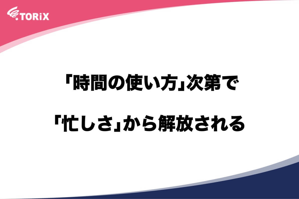 現代では多くの人が日々「忙しさ」に追われています。しかし、人は「時間の使い方」を見直すだけで「忙しさ」から解放されます。今回は「忙しさ」から解放されるための考え方についてお伝えします。
