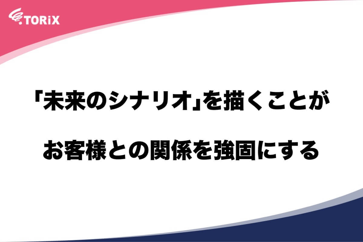 そうすると、営業としてはお客様に「投資して良かった」と感じていただけるような支援を行う必要が出てきます。結局のところ、お客様に投資額以上のリターンをお返しすることができるかどうかは、お客様の未来における2つのシナリオをしっかりと提示できるかどうかにかかってくるのです。