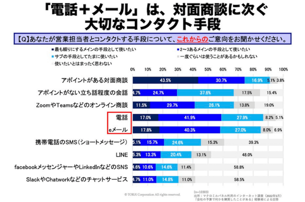 実際、お客様にとって「電話とメール」は、対面商談に次ぐ重要なコンタクト手段です。多くの企業では、インサイドセールスには電話やメールの指導を行いますが、フィールドセールスにはあまり教えていません。この点に関して、電話とメールの効果的な活用方法の指導が不足しているという課題があります。