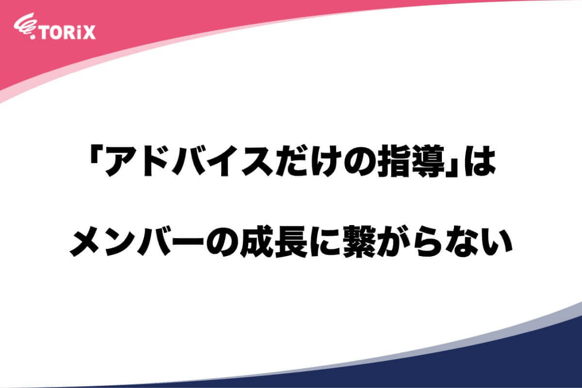 なぜそうなのかということですが、アドバイスというのは「こうしたほうがよい」「こうするべきだ」というような意見や提言であり、それは直接的にメンバーのスキルを向上させるわけではないからです。アドバイスは、いわばヒントのようなものです。ただし、貴重なヒントであっても、それを実際に活かせる場面がなければ、その恩恵を受けることはできません。