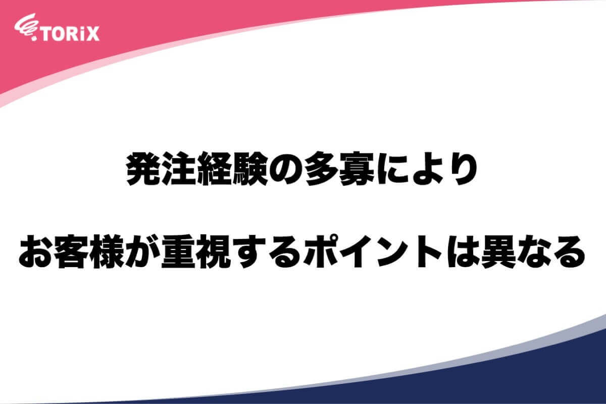 その時の1つの視点として「発注経験」があります。それは、「発注経験の多い・少ないによって、お客様の購買行動が変わってくる」ということです。
