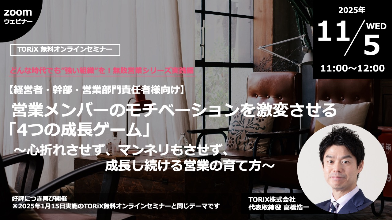 営業メンバーのモチベーションを激変させる「4つの成長ゲーム」~心折れさせず、マンネリもさせず、成長し続ける営業の育て方~【経営者・幹部・営業部門責任者様向け】