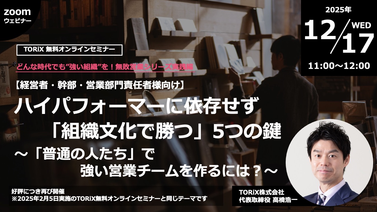 ハイパフォーマーに依存せず「組織文化で勝つ」5つの鍵〜「普通の人たち」で強い営業チームを作るには?〜【経営者・幹部・営業部門責任者様向け】