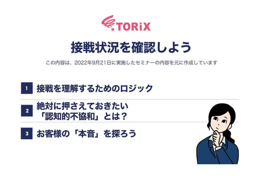今回は、「接戦」について理解し、お客様の本音を探るためのヒントについて資料にまとめました。