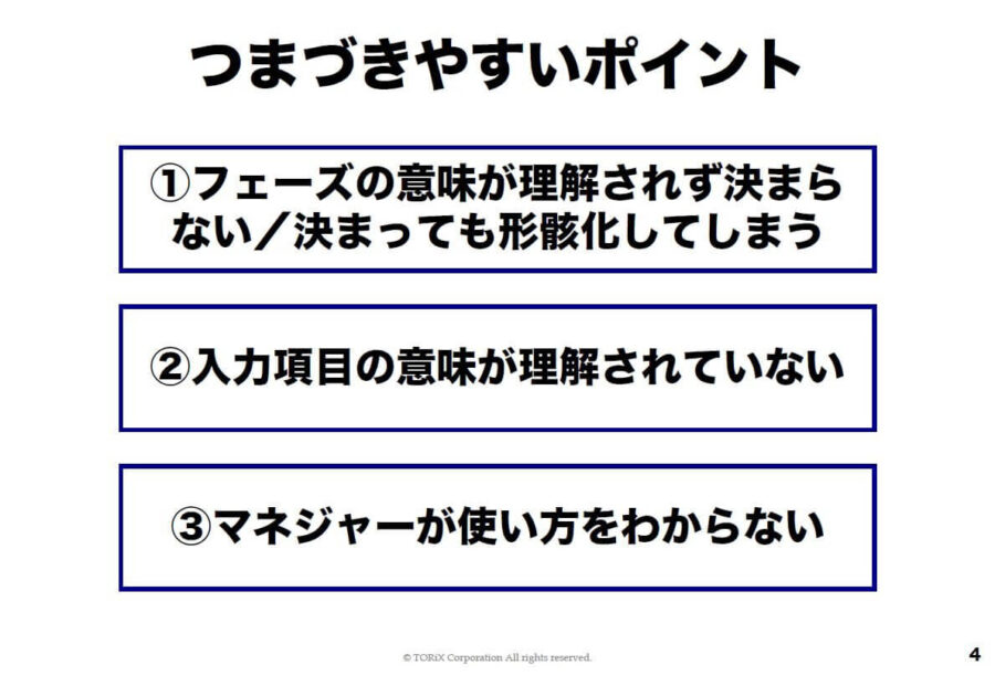 初期段階の「議論」のプロセスを飛ばしてしまうと、フェーズが有名無実化し、プロセスマネジメントが機能しません。