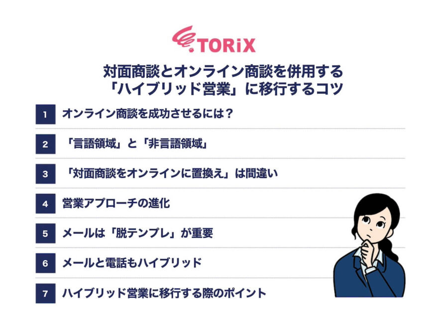 今回は、対面とオンラインを併用したハイブリッド営業にどのように移行するかのポイントについて、数枚程度にまとめた資料を作成しました。